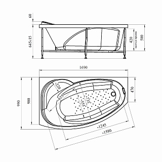 Модель имеет очень удобную конструкцию, предоставляя владельцу вместительную внутреннюю чашу. При этом ванна очень рационально размещается в углу помещения, что позволяет сэкономить больше свободного пространства. Ванна может быть изготовлена в левом и в правом исполнении.
