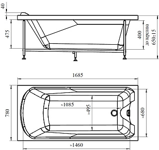 В комплекте: чаша ванны, каркас,слив-перелив,фронтальная панель.