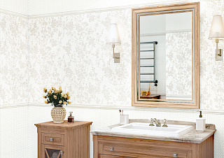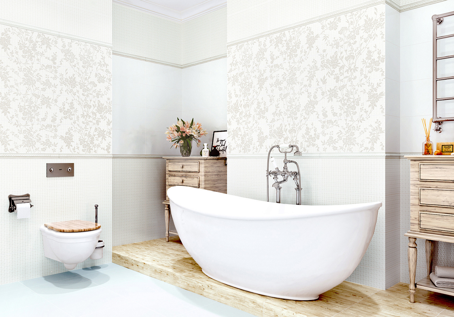 Утонченный светло-кофейный орнамент и мерцающие переливы света на глянцевой белой поверхности — главное очарование коллекции Eleganza. Объемный орнамент изогнутых линий в сочетании с блеском изящного флористического рисунка наполнят пространство светом. Декоративная плитка предлагается по стоимости за м² и состоит из шести разных рисунков в пределах одного артикула, что позволяет получить неповторимый цветущий сад в интерьере за разумную стоимость. Широкий бордюр с рельефом и перламутровым напылением произведен специально к коллекции.