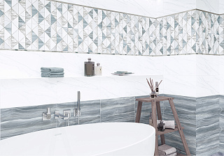 Коллекция Julia в размере 249×500 мм с глянцевой поверхностью — это имитация натурального камня в сочетании с современным геометричным декором. Два цвета базовой плитки и декор позволят создать индивидуальный, неповторимый интерьер.