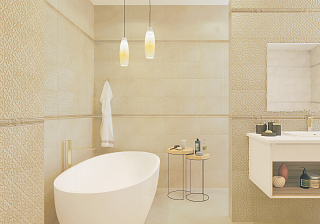 Нежная коллекция плитки Petra погружает в мир античной культуры и старины. Теплые, бежевые оттенки камня с будто высеченным древними мастерами рельефом наполнят помещение светом. Бордюры с узором, образующие единый орнамент, поддерживают идею коллекции и дополняют образ всего интерьера.