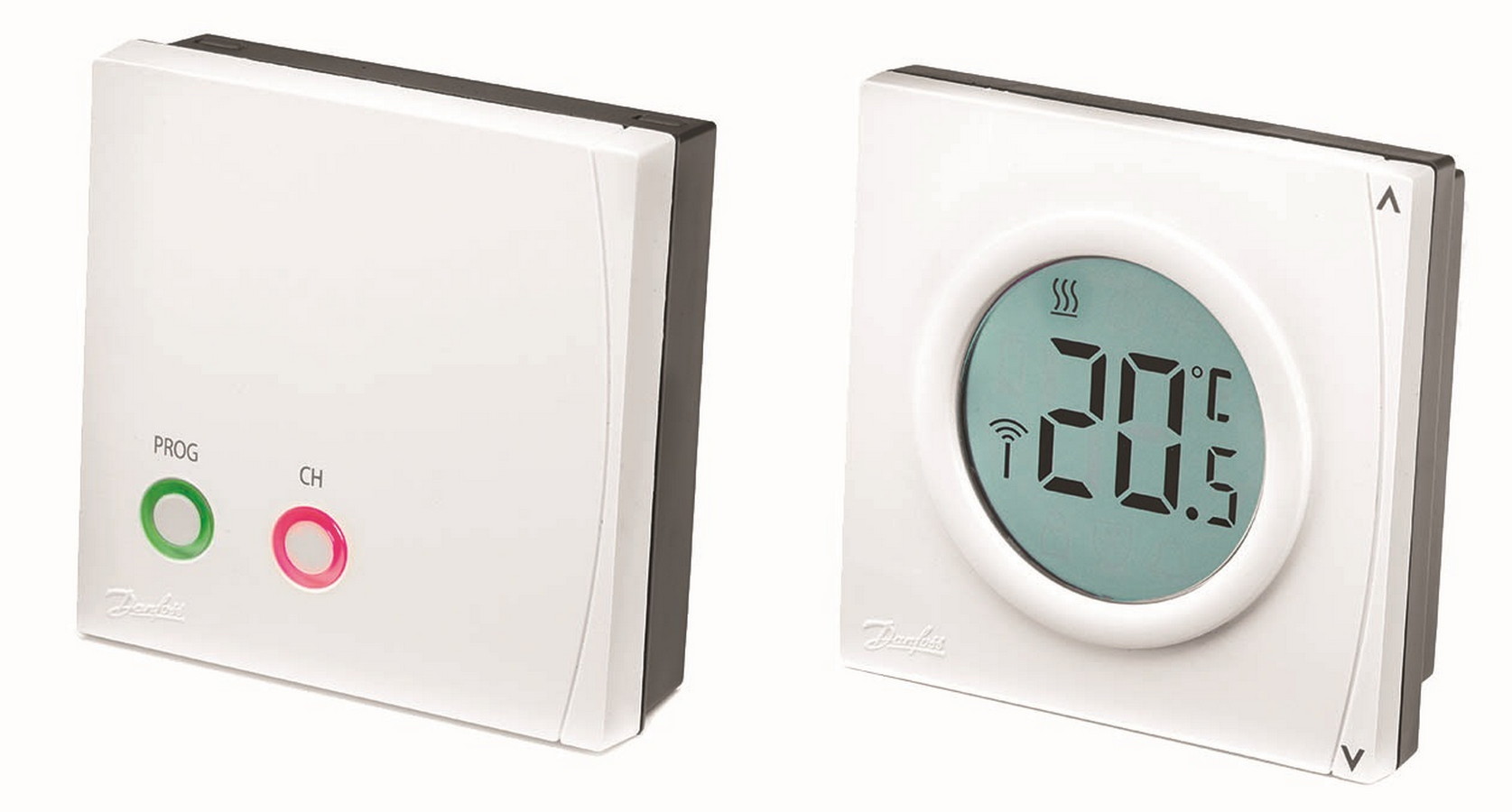 Комнатный термостат RET2000B-RF и ресивер RX1-S – комплект, объединяющий в себе современный дизайн и энергоэффективность. Термостат оснащен дисплеем, на котором отображаются текущая температура в помещении и индикатор включения отопления. На ресивере присутствуют индикатор приёма сигнала от термостата и индикатор включения отопления. Подсветка дисплея облегчает работу с термостатом в помещениях с недостаточной освещенностью. Помимо стаднартного вкл./выкл. регулирования можно воспользоваться функцией хронопропорционального регулирования. Режим работы может быть выбран при монтаже термостата с помощью DIP переключателей. Хронопропорциональный режим – это улучшенный алгоритм пропорционально-интегрального (ПИ) регулирования, который обеспечивает более точное регулирование температуры, снижает потребление энергии и обеспечивает комфорт. Термостат RET2000B-RF оснащен входом для подключения внешнего датчика. В качестве внешнего датчика может быть использован датчик температуры (например, для регулирования температуры теплого пола), контакты датчика открытия окна, управляемые дистанционно контакты или автоматика здания. Среди дополнительных функций присутствует возможность установки максимальной и минимальной температуры настройки, блокировка настройки.