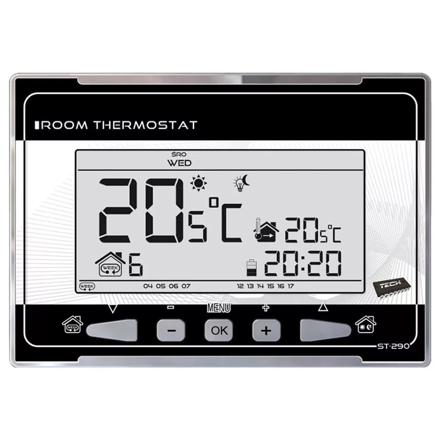 Комнатный терморегулятор TECH ST-290v2 пользуется в Европе особой популярностью в связи с оригинальным дизайном (передняя панель крепится на магнитах), огромного экрана с белой подсветкой и из-за невысокой цены. Вы можете на каждый день недели установить свой график температур.