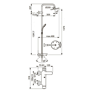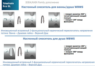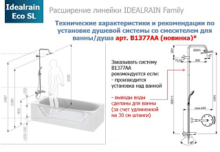 Расход воды: Излив – 22 л. - Верхний душ – 11 л. - Ручная лейка – 8 л.
