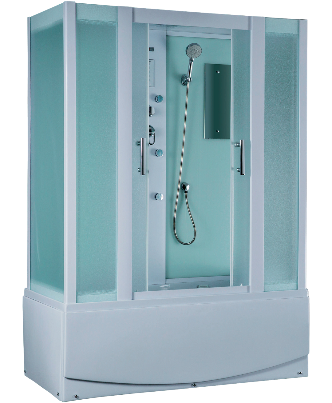Размеры 1680x800x2180, высота поддона 60 см, структурные матовые стекла, съемный экран из трех частей, хромированный слив-перелив П/А с сифоном, алюминиевый профиль - белый матовый, верхний душ (тропический ливень), встроенный однорычажный смеситель TIMO с четырехрежимным переключателем на верхний душ, душевую массажную лейку, гидромассажные форсунки, наполнитель ванны, хромированный смеситель, зеркало, ручки, сенсорный пульт нового поколения с функциями включения/выключения, FM-радио, верхний свет, вентиляция, безопасное напряжение на выходе 12 V. Сборка осуществляется с применением герметика.