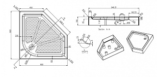 Поддон душевой, пятиугольный, акриловый (3,5-4 мм толщ.), каркас с ножками, сифон.