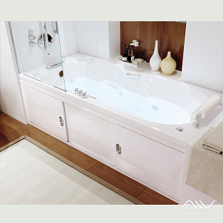 Экран изготовлен из качественных сертифицированных материалов – МДФ и ДСП. Это гарантирует ему надежность и долговечность. Винтовые опорные ножки помогут оптимально отрегулировать высоту экрана под параметры ванны.