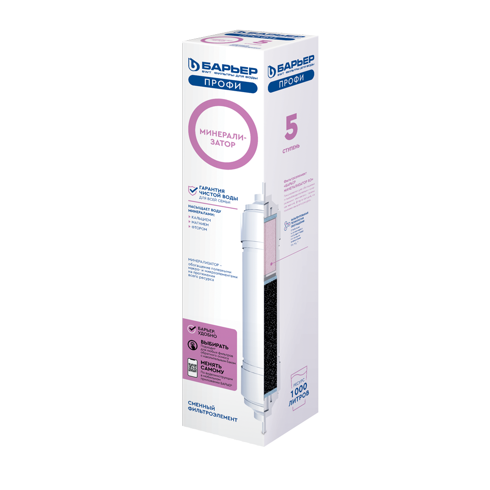 Сменный картридж для обратноосмотического фильтра под мойку. Предназначен для установки в 5-ю ступень обратноосмотической водоочистной системы БАРЬЕР Профи Осмо М. Картридж возвращает воде физиологическую полноценность, насыщает её полезными минеральными компонентами – кальцием, магнием и фтором. Технология минерализации БАРЬЕР запатентована и не имеет аналогов в мире.