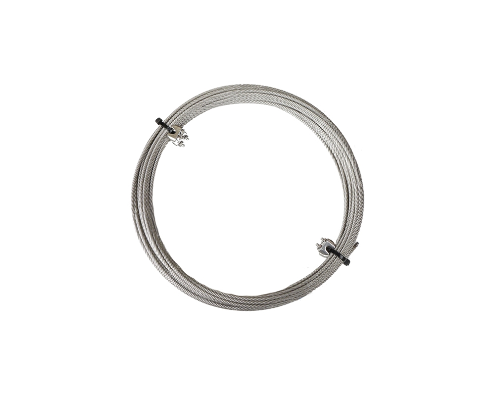 В комплекте к каждому тросу входят хомуты для крепления в количестве 4 шт. Концы троса запаяны, что предотвращает его расплетение.