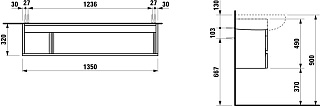 Laufen Alessi One 4.2436.0.097.630.1 Тумба под раковину на 160 см. Размер 135х32х48 см. С 2 ящиками с механизмом мягкого закрывания, со скрытым сифоном. Отделка шпон ореха.