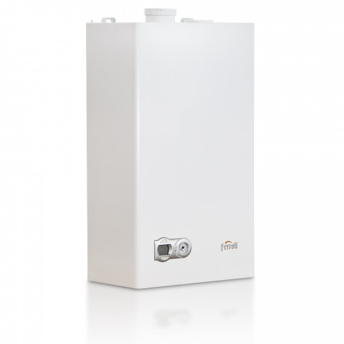 Газовый котел Ferroli Fortuna F24 разработан итальянской компанией-производителем для бытового использования и обеспечения помещений одновременно и отоплением, и горячим водоснабжением. Двухконтурный котел относится к категории турбированных, что означает, что в его конструкции задействована закрытая камера сгорания. Дымоход для отвода продуктов сгорания является коаксиальным, соответственно, его диаметр составляет 100/60 мм.