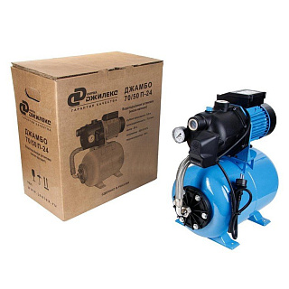 Джилекс Джамбо насосная станция 70/50 П-24 состоит из насоса поверхностного и горизонтального гидроаккумулятора объемом 24 литра, реле давления, манометра, соединительной арматуры и электрокабеля с вилкой. Имеет производительность 70 л/м и максимальный напор 50 метров, корпус насоса выполнен из пластика, а гидроаккумулятор из углеродистой стали. Используется для создания комфортных условий пользования водой при пониженном давлении в трубопроводе. В управлении работой насоса применяется реле давления РДМ-5, которое позволяет насосной станции автоматически включаться и выключаться по давлению воды.