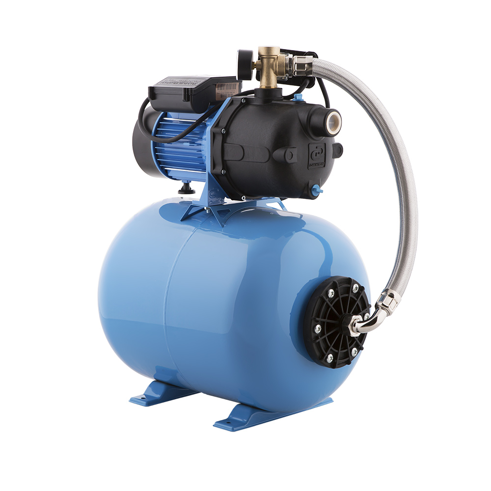 Насосная станция Джилекс Джамбо 70/50 П-50 состоит из насоса и горизонтального гидроаккумулятора объемом 50 литров, реле давления, манометра, соединительной арматуры и электрокабеля с вилкой. Имеет производительность 4,2 м3 в час и напор 50 метров, корпус насоса выполнен из пластика, а гидроаккумулятор из углеродистой стали. Используется для создания комфортных условий пользования водой при пониженном давлении в трубопроводе. В управлении работой насоса применяется реле давления РДМ-5, которое позволяет насосной станции автоматически включаться и выключаться по давлению воды.