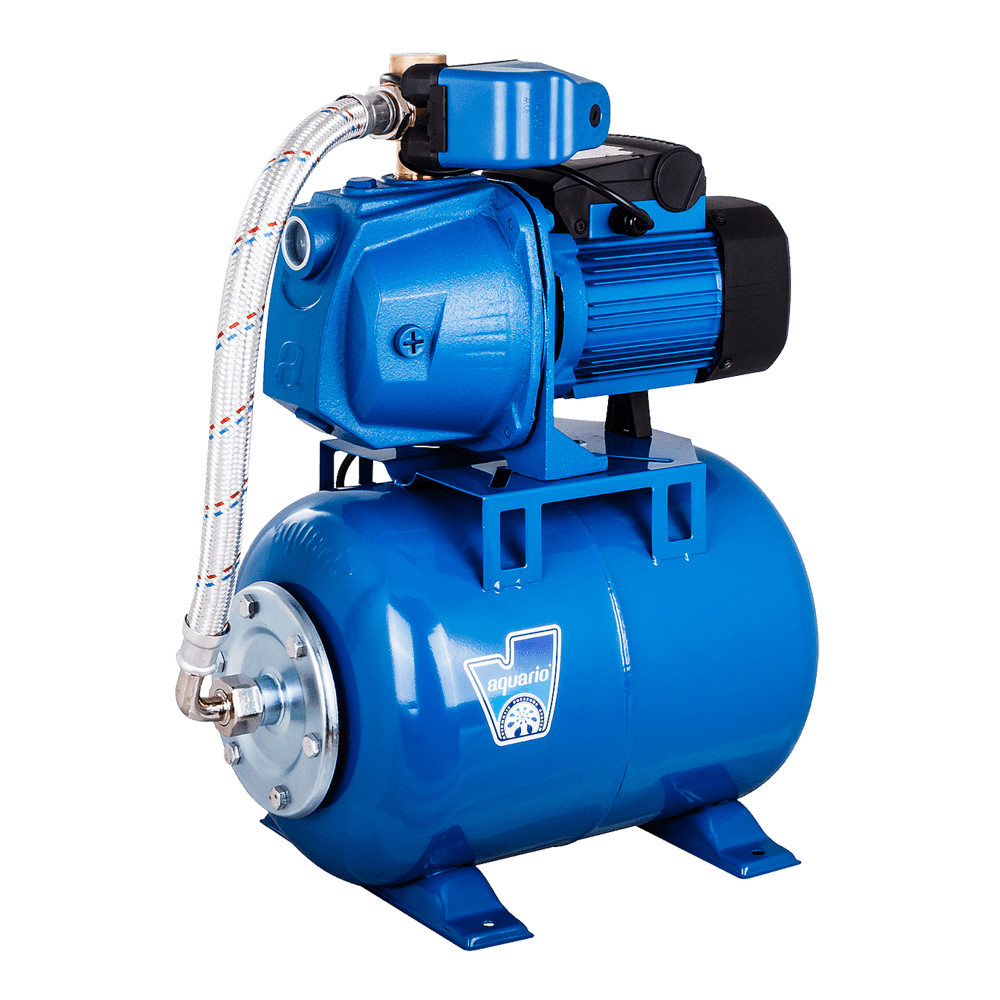 Двигатель насоса - воздушного охлаждения, асинхронный , с короткозамкнутым ротором , пусковым конденсатором и встроенным защитным тепловым реле; Класс теплостойкости изоляции двигателя – В Класс защиты двигателя – IP44 Тип рабочего колеса –центробежное, отбалансированное Материал рабочего колеса – латунь В конструкции гидравлической части используется диффузор и внутренний эжектор. Материал диффузора и эжектора – технополимер Материал обмотки статора – 100% медь Материал сердечника статора и ротора – электротехническая холоднокатаная сталь Материал вала насоса – нержавеющая сталь AISI 304 Материал корпуса насосной части – чугун Компоненты насосной станции: Гидроаккумулятор - 24л со сменной мембраной; Реле давления РМ-5 – механического типа с регулировкой давления включения насоса и давления выключения. Диапазон регулирования 1-5 атм. Манометр Штуцер 5-ти вводной Соединительная гибкая подводка в металлооплетке.