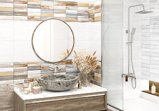 Коллекция Congo — это задорный микс разнообразных деревянных текстур с элементами ярких красок и штукатурки. Глянцевые базовые плитки белого и кофейного цвета с текстурой древесины, патины и штукатурки подчеркнуты спецэффектом матовых чернил для получения многослойности и объема. Первый декоративный массив на рельефе выполнен в светлой гамме белых оттенков, а второй — микс текстур и ярких красок.