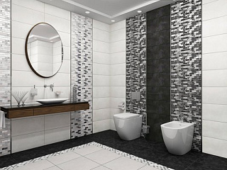 Коллекция Glent представлена в формате 249×500 мм. Декоры выступают как выразительный акцент коллекции, выполненный в столь популярном стиле лофт. Они отличаются оригинальностью и станут ключевой деталью интерьера. С их помощью можно создать современный интерьер ванной комнаты с нотками индустриальности. Бордюр Sword и мозаика Vesta Silver гармонично дополняют декоративные элементы. Керамогранит представлен в двух вариантах Antre Black и Antre White, что позволяет их комбинировать разнообразными способами.