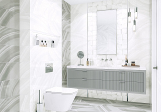 Коллекция Miracle в формате 249×500 мм с глянцевой поверхностью выглядит очень современно, стильно, неповторимо. Плитка с рисунком мрамора в сочетании с декором Scale в виде плавных линий будут эффектно смотреться в помещении даже не большого размера. Глянцевая поверхность будет увеличивать пространство за счет своего отражения.