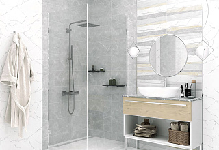 Коллекция «Байрон» вобрала в себя лучшие идеи из скандинавского стиля и минимализма. Современный дизайн коллекции объединяет легкое настроение базовых плиток мрамора сорта carrara и спокойную гармонию холодного, серого камня pulpis. Горизонтальная нарезка декоративного элемента сочетает в себе характеры баз и украшена смелыми штрихами золота и платины. Декор доступен в двух гаммах, в двух настроениях. Первый вариант декора в золотом исполнении добавит в помещение сдержанный контраст и деликатный теплый акцент. Второй вариант с платиновым блеском гармонично впишется в холодную цветовую гамму интерьера. Российская, глянцевая плитка WT9SES25 Sens Dark 250*500*9 прямоугольной формы, размера 25x50, серого цвета. Данный вид плитки, имитирующий камень, подойдет для стены Вашей ванной. Чтобы купить WT9SES25 Sens Dark 250*500*9, сделайте заказ через корзину или по телефону