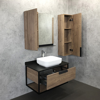Подвесная шкаф-колонна с одной распашной дверью. Створка оборудована петлями с системой плавного закрывания. За створкой 2 горизонтальные полки. Полуколонна универсальна, может быть подвешена в правом и левом варианте.