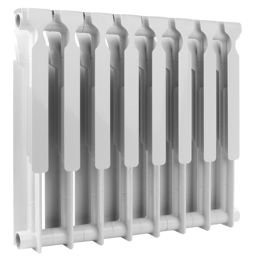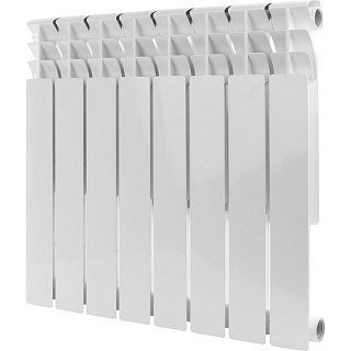 Rommer Optima BM 500/8 - биметаллический радиатор повышенной мощности, рассчитанный на эксплуатацию в центральных и индивидуальных отопительных системах в условиях использования агрессивных сред. Коллектор радиатора выполнен полностью из коррозионностойкой стали и представляет собой сварной каркас из продольных и поперечных трубчатых элементов, который впоследствии залит под высоким давлением алюминиевым сплавом