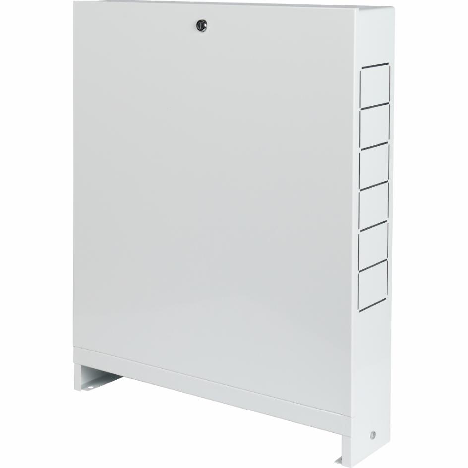 Шкафы STOUT предназначены для размещения в них распределительных коллекторов и коллекторных блоков для систем отопления (радиаторной или напольной) с поквартирной разводкой или водопровода. Шкаф выполнен из оцинкованной стали, окрашен порошковой краской RAL 9016 с предварительным нанесением фосфатной пленки для придания антикоррозионных свойств изделию. В боковых стенках корпуса шкафа выполнена перфорация, сегменты которой удаляются в любом удобном месте для подсоединения трубопроводов. Шкаф имеет регулировку по высоте до 40 мм за счет выдвижных ножек. Внутри шкафа установлены универсальные профильные крепления, позволяющие располагать оборудование по всей высоте и ширине шкафа. Шкаф оснащен внутренним замком.