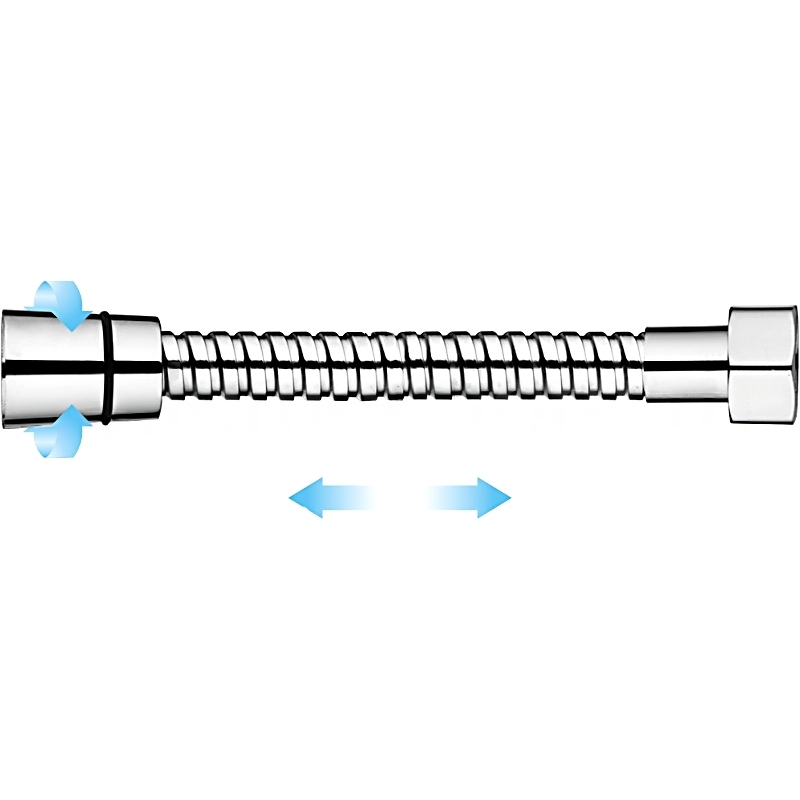 Дополнительная информация Внутренняя труба из EPDM; Латунная гайка; Латунный конус; Латунная торцевая втулка; Свободное вращение на 360°, защита от скручивания; С механизмом против скручивания; Растягивающийся от 150 до 190 см.