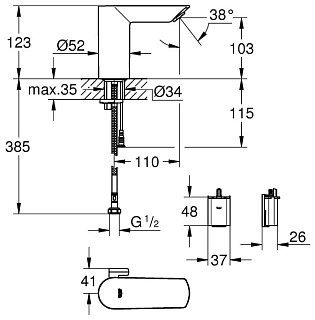 Бесконтактный смеситель для раковины 1/2″ со смешиванием и с регулируемым ограничителем температуры