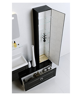 Напольная дополнительная тумба с одним ящиком в черном глянцевом цвете.