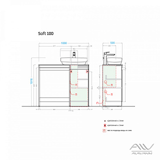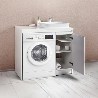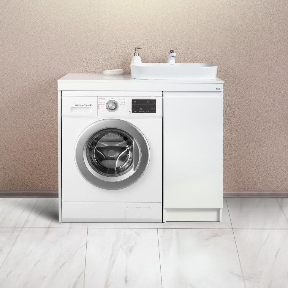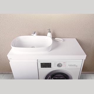 Тумба с раковиной Soft (размер 100) является одним из элементов дизайнерской коллекции мебели для ванных комнат. Столешница тумбы в ванную предусмотрена под установку стиральной машины.