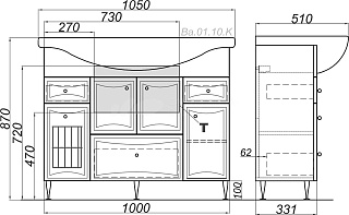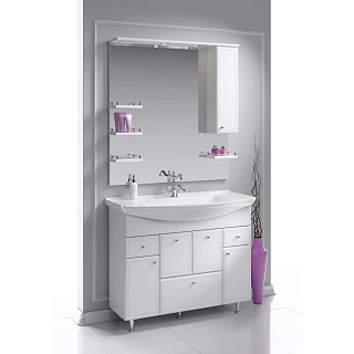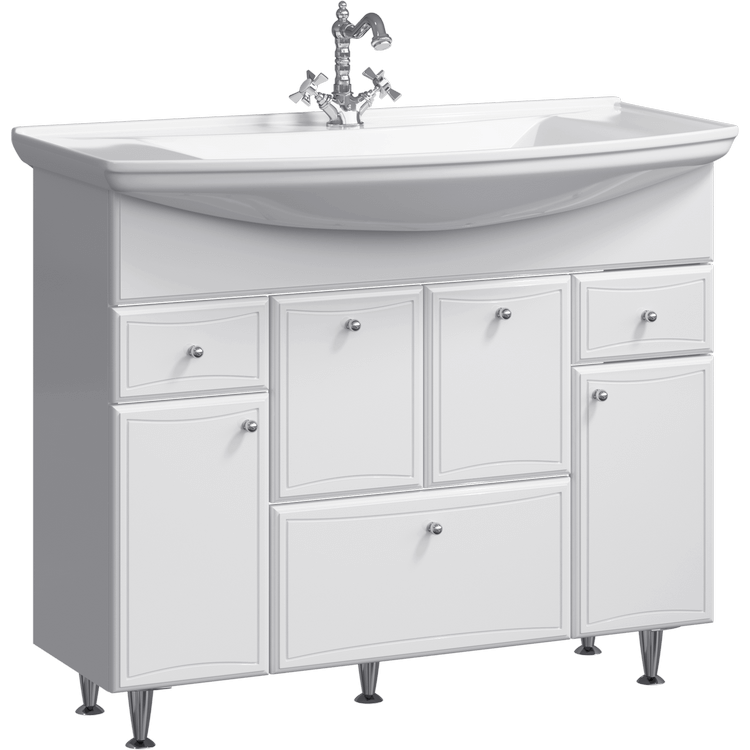 Тумба с раковиной Aqwella «Барселона Люкс» 105 поможет использовать пространство ванной комнаты с максимальной эффективностью. Модель обладает продуманной системой хранения и отличается вместительностью, а значит, для хранения средств гигиены и банного текстиля не понадобится приобретать шкаф – всё прекрасно поместится в тумбе. Наличие встроенной бельевой корзины избавит от необходимости ломать голову, где хранить грязные вещи. Небольшие предметы превосходно размещаются в закрытых выдвижных и распашных ящичках. Конструкция устойчива: усиленная дополнительной ножкой, тумба не проседает и не деформируется со временем.Коллекция «Барселона Люкс» представлена в классическом стиле. Она производится из экологически безопасных и влагоустойчивых ДСП и МДФ. Фасад окрашен пятью слоями глянцевой эмали. Фурнитура и сетчатая корзина не подвержены коррозии.
