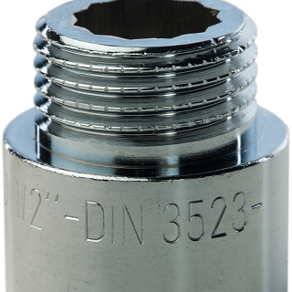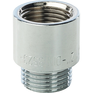 Удлинитель – фитинг, используемый в качестве соединительного элемента в трубах. Элемент представляет собой цилиндр с укороченной резьбой. С одной стороны она нарезана на внешней части корпуса, с другой – на внутренней. Внутренний диаметр изделия выполнен в виде гайки для удобного и быстрого монтажа.