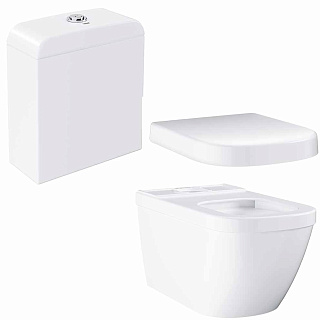 Унитаз Euro Ceramic от немецкой компании Grohe сочетает в себе функциональность и стильный дизайн и превосходно вписывается в современный интерьер. Фарфоровая модель обладает отличными качественными характеристиками и рассчитана на долговечную эксплуатацию. Прямоугольная безободковая чаша с глазурованной поверхностью омывается мощным потоком воды, который удаляет все загрязнения за один раз. Наличие двух механических кнопок на бачке позволяет регулировать расход воды. Подключение к системе водоснабжения осуществляется снизу, это обеспечивает бесшумную работу изделия.