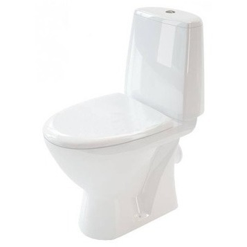 Унитаз-компакт с горизонтальным выпуском, в комплекте дюропластовая крышка-сиденье. Бачок оснащен арматурой с механическим двухрежимным смывом. Подвод воды снизу бачка.