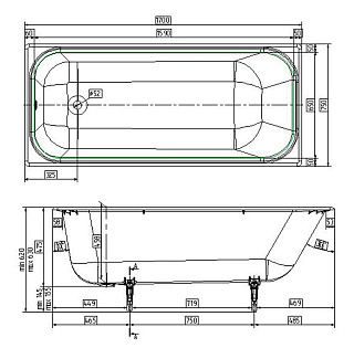 Прямоугольная чугунная ванна. Универсальный дизайн, глубокая чаша и зауженный борт.