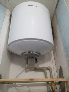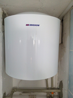 Для защиты бака водонагревателя от коррозии применяется анод из магния. Настенный монтаж Edisson ER 50V осуществляется с помощью креплений на задней стенке корпуса, при этом установка аппарата весом 18 кг осуществляется вертикально, а подводка - нижняя.