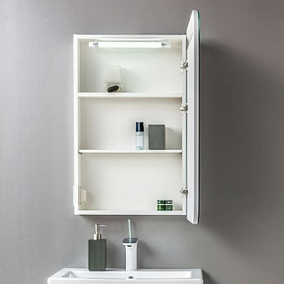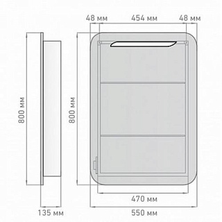 Зеркальный шкаф для ванной Alta 55 с люминесцентной подсветкой – оригинальное дизайнерское решение для современного интерьера. Зеркало выполнено на основе серебряной амальгамы, которая обеспечивает изделию высокое качество, блеск и идеально ровную поверхность. Правостороннее открытие фасада. Данный вид мебели для ванной комплектуется розеткой с выключателем (снаружи, с левой стороны).
