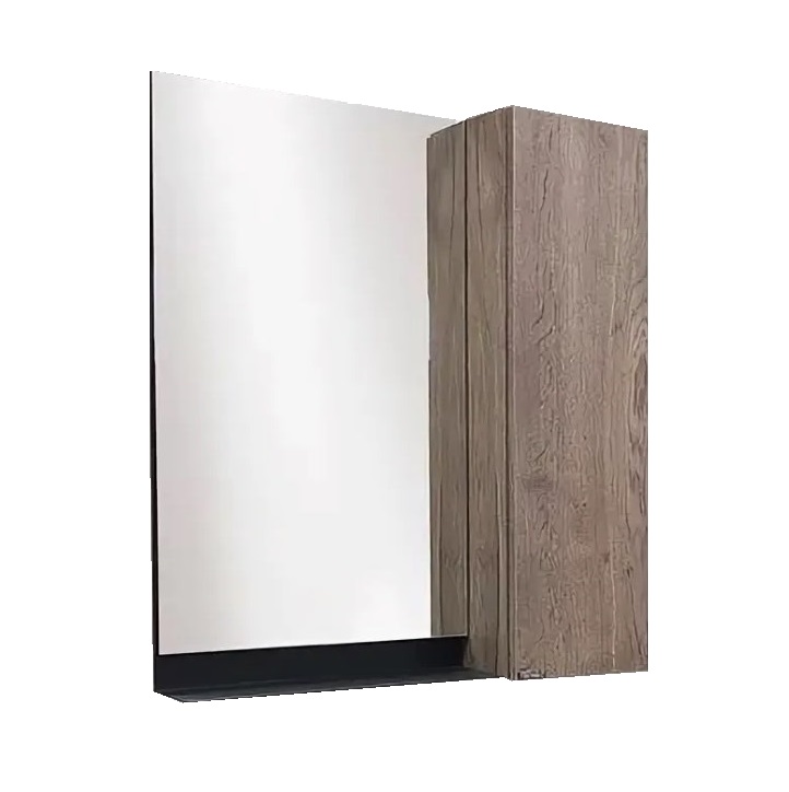 Зеркальное высококачественное полотно с амальгамой на основе серебра. Створка мебельного элемента оснащена петлями с системой плавного закрывания. За дверцей одна горизонтальная полка. Зеркало-шкаф состоит из двух отдельных элементов - зеркала и шкафчика - поэтому универсально, может быть подвешено в правом или левом варианте.