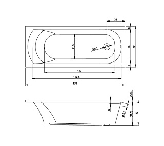 Акриловая ванна Riho LUGO 170x75 (чаша,ножки)