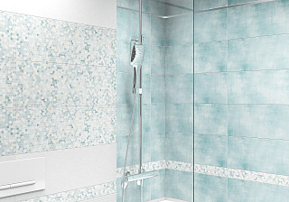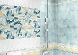 В состав этой коллекции входит 5 видов разнообразной по оформлению керамической напольной плитки, 2 бордюра и 2 декора. Все вместе это позволяет создавать самые разные композиции. Напольная часть коллекции представлена одним типом керамогранита под вид голубоватой бетонной поверхности.