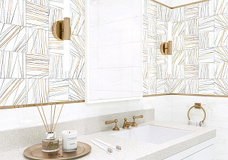 Коллекция Modern выглядит очень эффектно благодаря геометричному декору с золотыми полосками. Формат 249×500 мм удобен для укладки и смотрится очень гармонично в помещении. Два цвета базовой плитки с глянцевой поверхностью помогут создать индивидуальный интерьер.