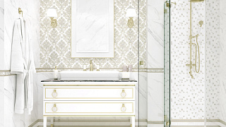 Эта богатая коллекция ориентирована на ценителей роскошного стиля в оформлении помещений. Настенная керамическая и напольная керамогранитная плитка исполнены под точный вид обработанного мрамора светлых пород. Обилие красивых декорирующих элементов позволяет создавать замечательные законченные композиции.
