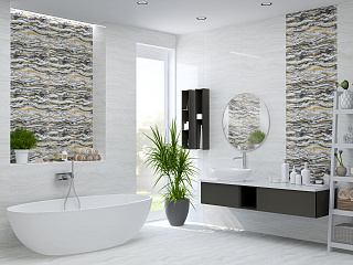 Российская, глянцевая плитка 587842006 Gala Geometry 24.2x70 прямоугольной формы, размера 24.2x70, серого цвета. Данный вид плитки, с оригинальным орнаментом, подойдет для декора Вашей ванной.