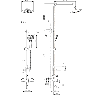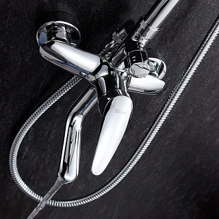 Аксессуары в комплекте (шланг 1,5 м, 1-функциональная лейка с функцией легкой очистки, регулируемое по высоте крепление для лейки, полочка для душевых принадлежностей)