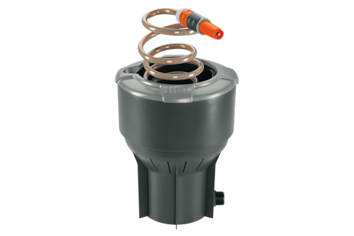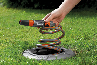 Колонка со спиральным шлангом Gardena 08253-20.000.00 входит в состав подземной системы полива. Подсоединяется к магистральному шлангу для подачи воды на поверхность земли к месту полива. Спиральный шланг, длиной 10 м, аккуратно свернут внутри колонки и легко достается по мере необходимости. Сверху колонка закрывается удобной крышкой для придания ухоженного вида садовому участку. Колонка снабжена коннектором с автостопом, который автоматически прекращает подачу воды при разъединении коннектора с распылителем или другим приспособлением. Имеет наружную резьбу G1".