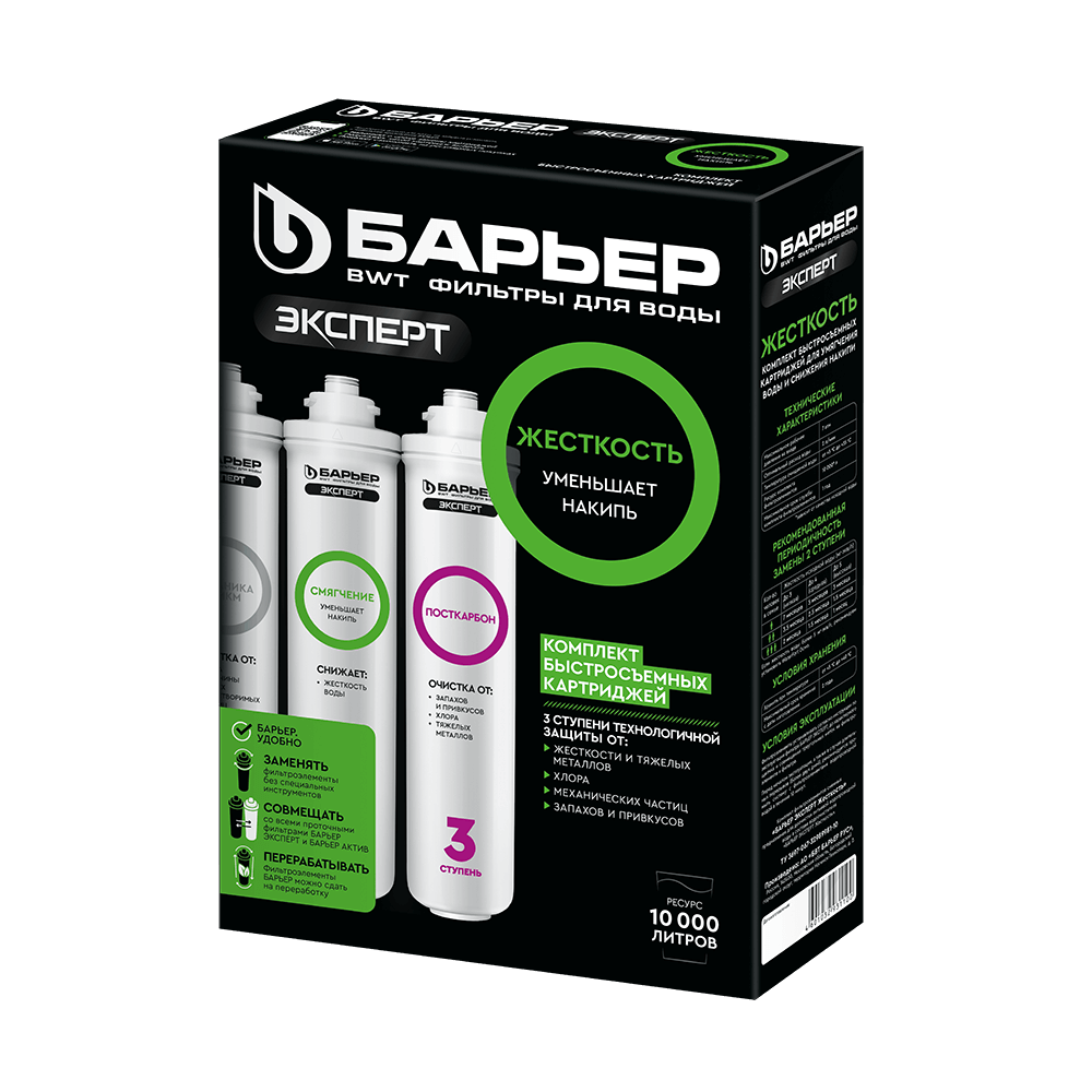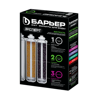 3."БАРЬЕР ЭКСПЕРТ ПостКарбон" - финишная очистка и кондиционирование, устранение неприятных привкусов и остаточного хлора.