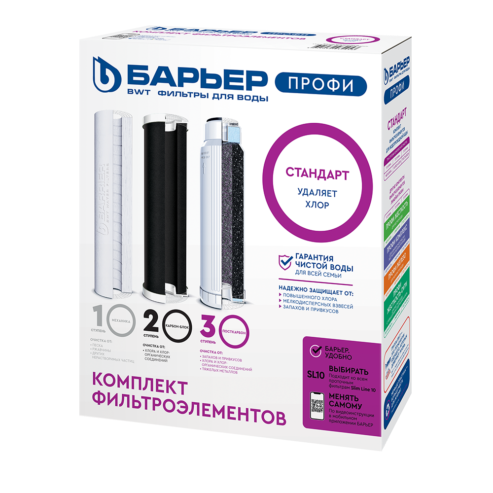 Комплект картриджей для 3-х колбовой системы проточной фильтрации Барьер ПРОФИ Стандарт (исполнение Лайт)