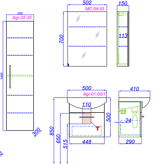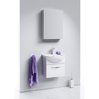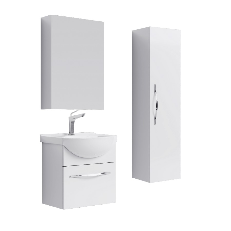 СОСТАВ КОМПЛЕКТА: ТУМБА С РАКОВИНОЙ, ШКАФ-ПЕНАЛ, ЗЕРКАЛО-ШКАФ.