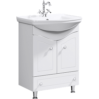 Коллекция в классическом стиле представлена напольными тумбами в четырех размерах: 65, 75, 85 и 105 см по ширине. Гарнитуры комплектуются керамическими умывальниками коллекции Стиль производства российского завода Kirovit. Для удобства открывания тумб используются хромированные металлические ручки с керамическими вставками итальянского производителя BosettiMarella. Фасады коллекции производятся из МДФ (древесноволокнистой плиты повышенной плотности) и покрыты 5-ю слоями белой глянцевой эмали. Боковины из ЛДСП (древесно стружечной плиты повышенной плотности) также окрашены. Нижний ящик в тумбах 65,75 и 85 см оснащен скрытыми направляющими австрийской фирмы Blum с системой мягкого закрывания, на которые производитель дает вечную гарантию. На все двери установлены мебельные петли с интегрированным доводчиком, обеспечивающим плавное закрывание.