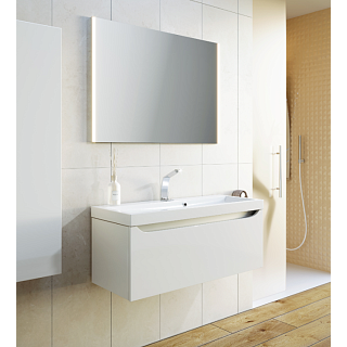 Минимализм, ориентированный на функциональность. Именно так будет справедливо описать предметы мебели коллекции Verona, фасады и боковины которой выполнены из МДФ (древесноволокнистой плиты повышенной плотности). Предметы интерьера доступны в двух цветах: белый – высокоглянцевая эмаль, нанесенная в пять слоев, а также акация, покрытые высококачественной пленкой с глубокой структурой дерева. Подвесные тумбы комплектуются умывальниками из литьевого мрамора. Ящики в тумбах на направляющих от австрийской фирмы «Blum», которые имеют функцию мягкого закрывания и гарантию на весь срок службы мебели. Для дополнительного удобства за фасадом расположена полка для хранения различных предметов. Внутренняя отделка элементов выполнена особым цветом (Eolo), напоминающим ткань. Мебель комплектуется влагостойкими зеркалами SM со светодиодной подсветкой, выключателем с датчиком движения, а также регулятором уровня освещённости.
