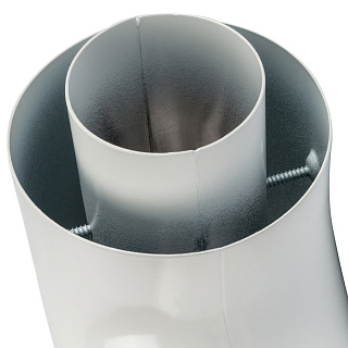 Коаксиальный дымоход - это дымоход, построенный по принципу "труба в трубе", когда по внутреннему тракту происходит удаление продуктов сжигания из котла в атмосферу, а по внешнему тракту происходит подвод воздуха в котел для горения. Системы дымоходов для традиционных неконденсационных котлов производятся из высококачественного алюминия. У коаксиальных систем внутренняя (дымоудаляющая) труба изготавливается из алюминия, внешняя (воздухоподающая) – из оцинкованного металла, алюминия или температуростойкого полипропилена, в зависимости от типа изделия. Максимальная рабочая температура 200С °, давление – 200 Ра.